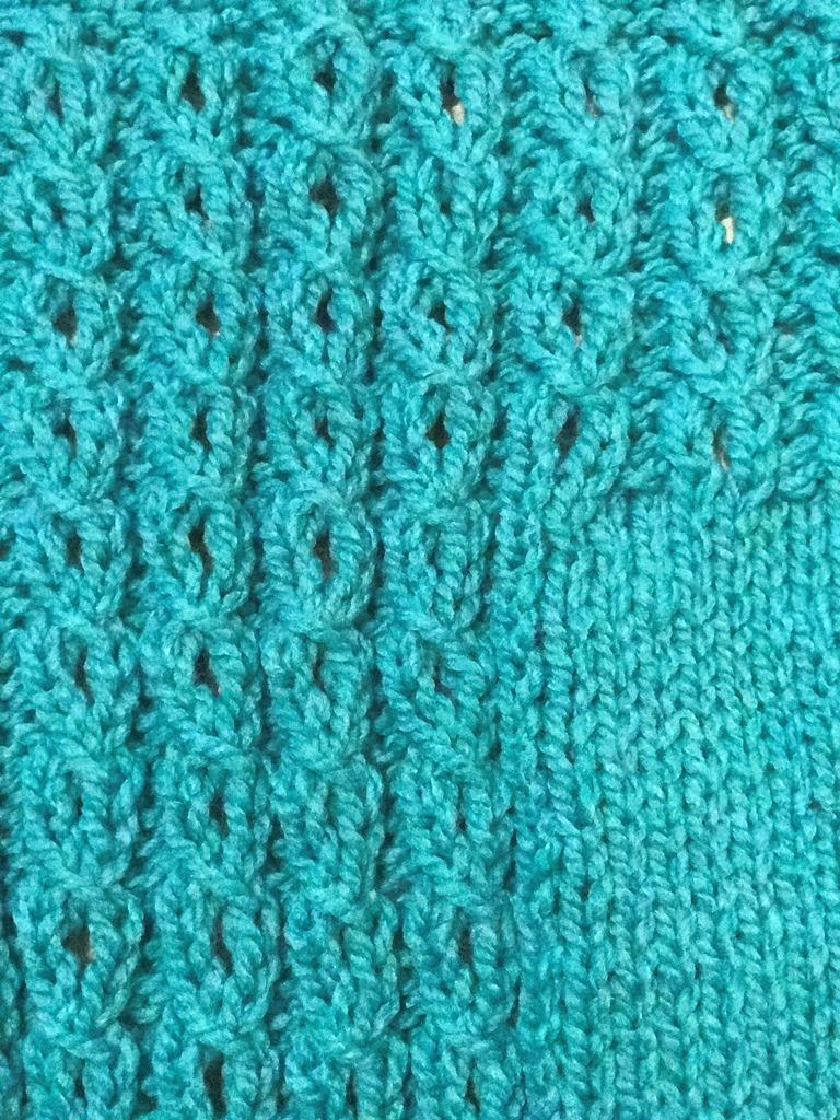 [16 puntos en ojo de perdiz, 2 puntos revés]; 20 puntos jersery; [16 puntos ojo de perdiz, 2 puntos revés], 30 puntos jersey; [16 puntos en ojo de perdiz, 2 puntos revés]; 20 puntos jersey; [16 puntos en ojo de perdiz, 2 puntos revés]