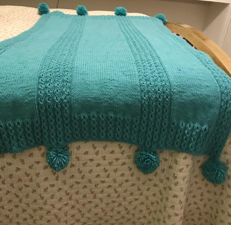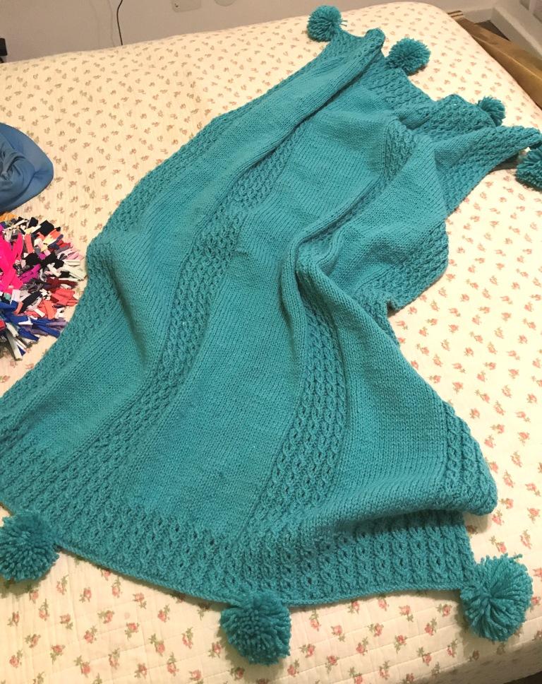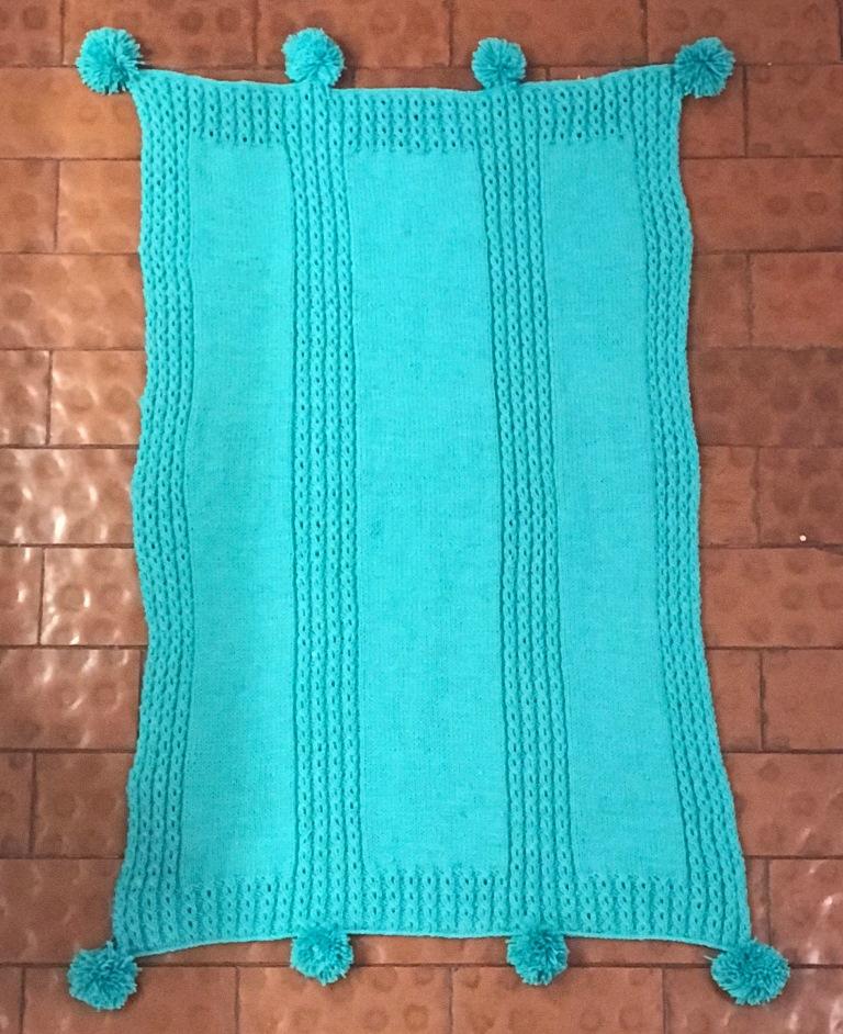 Si quieren, a esta manta con punto ojo de perdiz, le pueden poner pompones para adorno o flecos.