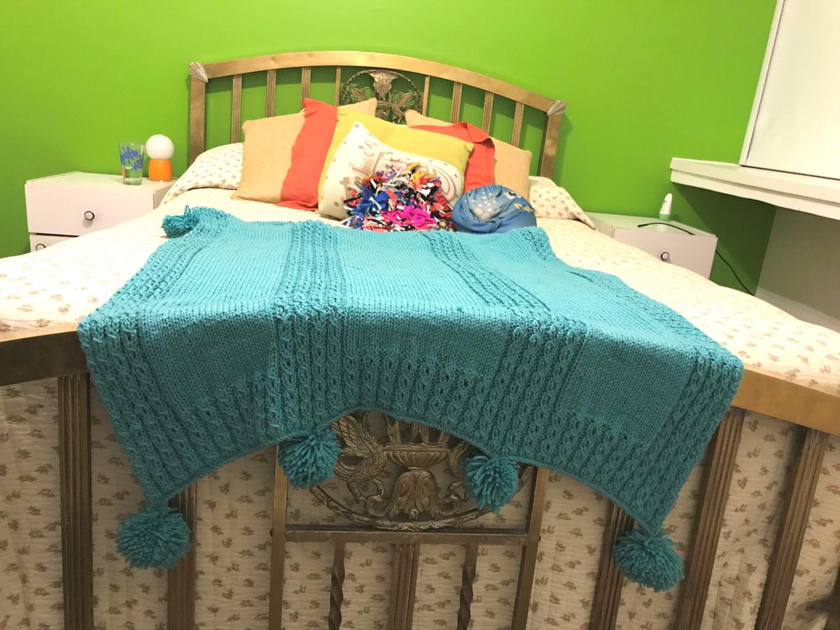 le tejí una manta con punto ojo de perdiz para que la coloque a los pies de la cama,