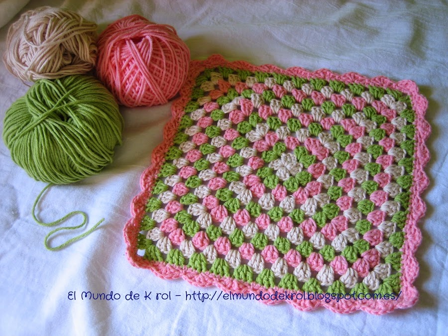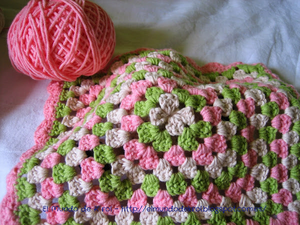 Después de rellenar la cabeza y cerrarla, tejí la mantita con la técnica de granny square, y así quedó:
