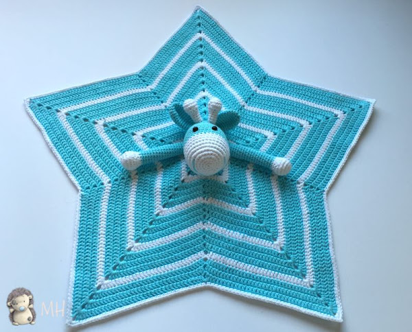 MANTA DE APEGO ESTRELLA CON JIRAFA, PATRÓN GRATISEstá hecha con algodón y un ganchillo de 2,5 mm para la manta base, y con el mismo algodón pero un ganchillo de 2 mm para la jirafita.