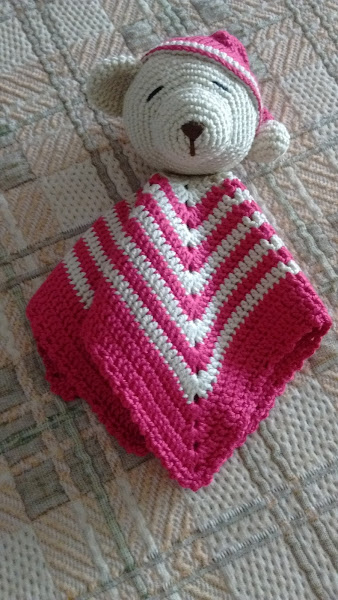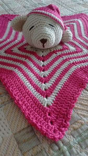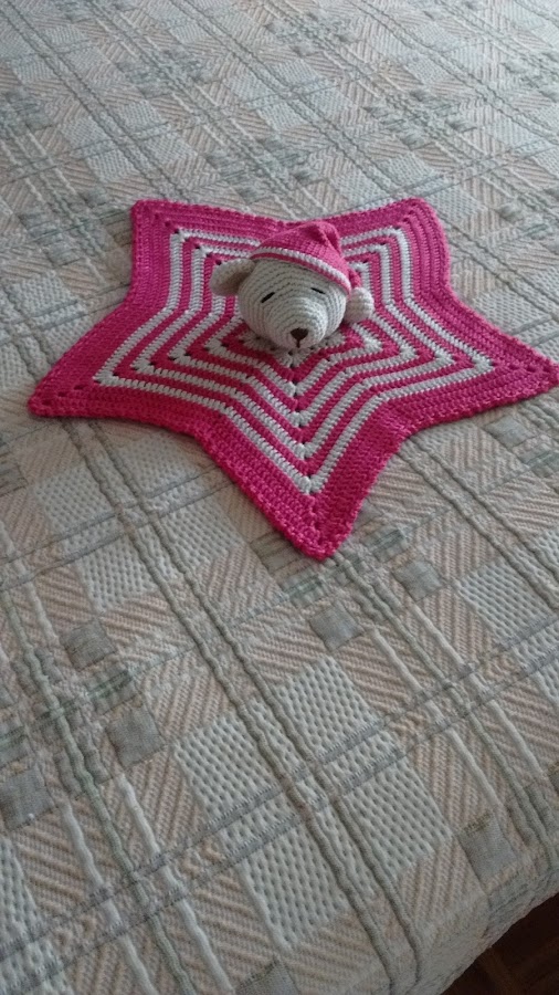 El patrón de la mantita de nuevo en Pitusas & Petetes y la cabeza del osito en El mundo de los Amigurumis, no dudéis en daros una vuelta por sus blogs son geniales.