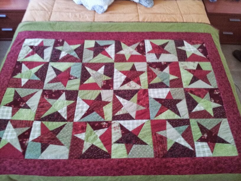 Esta es otra mantita de patchwork hecha con muuucho cariño, la verdad es que me encantan las estrellas. Por la parte de atrás le puse una tela de forro polar y quedó muy gustosita!