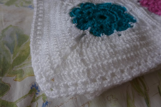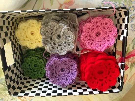 Pues bien, como os contaba, allá por el mes de febrero tenía algunas flores tejidas y guardadas,