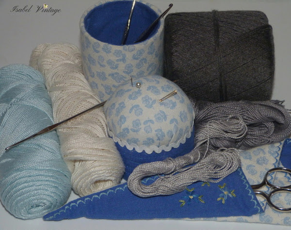 El conjunto de funda de tijera, acerico y bote están hechos por Malores, fue un regalo suyo que me hizo muchísima ilusión. La aguja de ganchillo, del número 1 también me la dio ella y es con la que he tejido toda la manta.