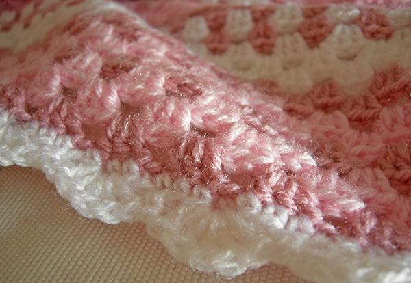 Y ésta sí que la he hecho yo, la tejí para mi sobrina. En lugar de unir muchos cuadrados, hice uno gigante rematado con ondas.