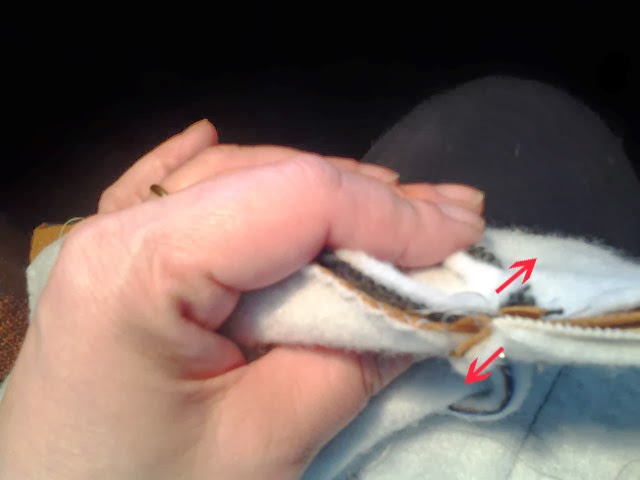 Foto al canto para que veáis como colocar las costuras y que la máquina no entre en estado se sock.
