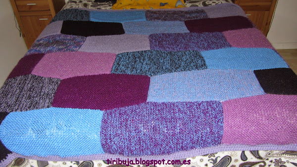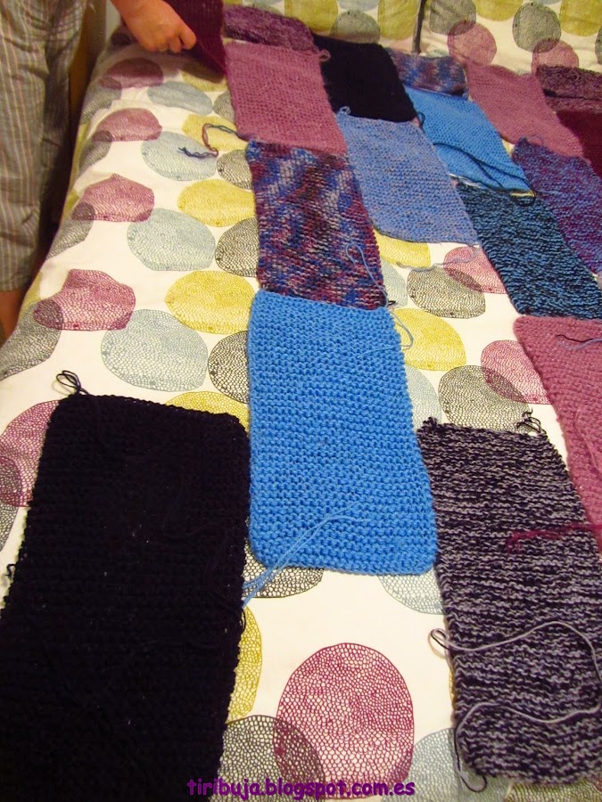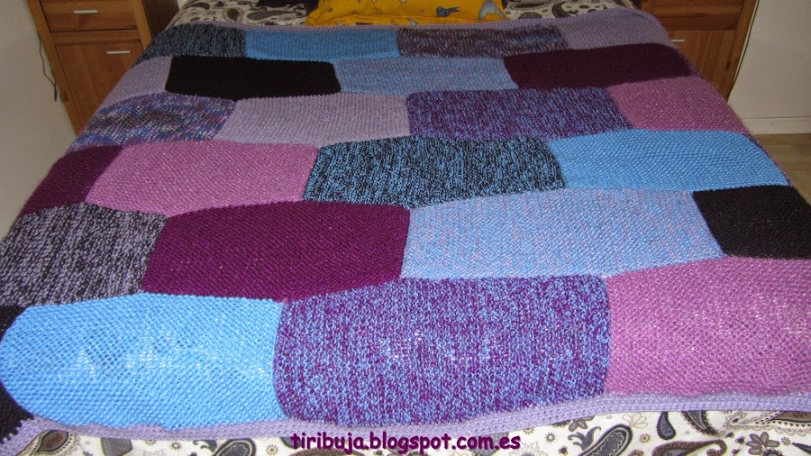 Calcular el tamaño final de la manta.... Esta la verdad es que es bastante grande, para haceros una idea está extendida en una cama de 150 y aún cuelga por los laterales, así que es grandota, como le gusta a ella...