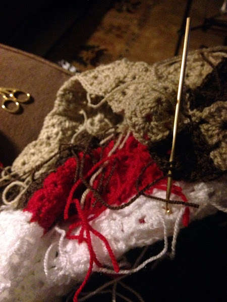 Después de terminar todos los cuadrados, como no los había ido rematando sobre la marcha, tenía una especie de manta peluda... Después de mucha faena rematando finales