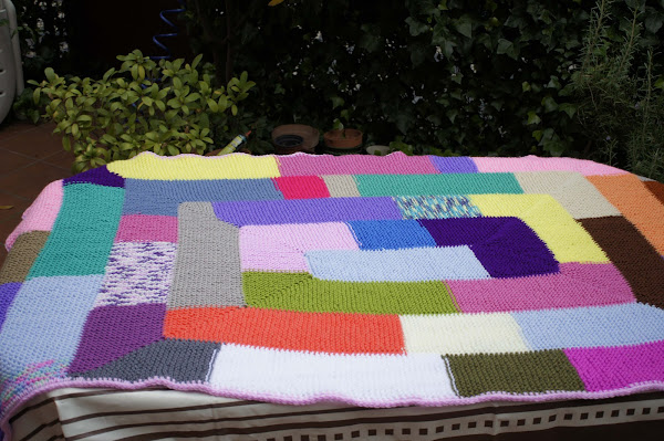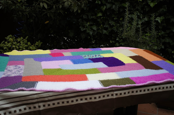 y aquí está la manta acabada, las fotos son cortesía de mi hija.