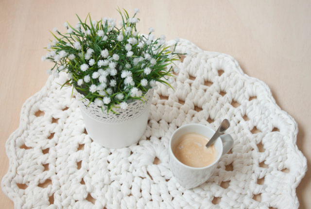 Pero esta vez quería algo diferente y lo encontré. En el blog Happy Ganchillo de Sara estaba este mantel con el video-tutorial, que puedes ver aquí. Si tú también eres principinate como yo con el trapillo, haces cestitas y quieres aprender algo nuevo, este tutorial se puede seguir paso a paso y está explicado con todo detalle.