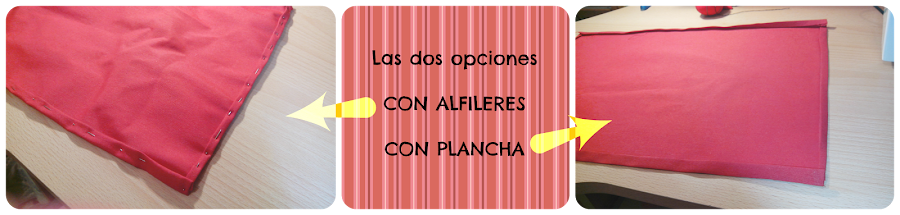 2- Pasarle la plancha antes de pasarla a la máquina de coser. De esta manera vamos quitando los alfileres mientras vamos marcando con la plancha los bordes del mantel. Esta forma es la que yo he realizado ya que es más cómoda luego para pasar la máquina de coser aunque nos llevará más tiempo de elaboración.