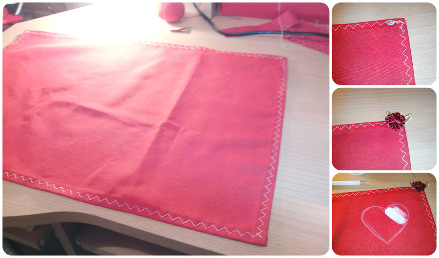 Hoy quiero enseñaros un mantelito individual que hice con un poco de tela la tarde de San Valentín. La hice con motivo de San Valentín. Un mantelito rojo con un corazoncito blanco y una rosita en una de las esquinitas.