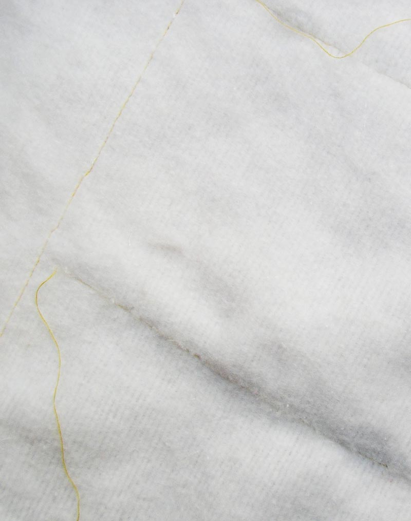 Y para que al lavarlos el muletón no se mueva pasé unas costuras desde la parte de arriba siguiendo las lineas de la tela. En la foto la parte de atrás.