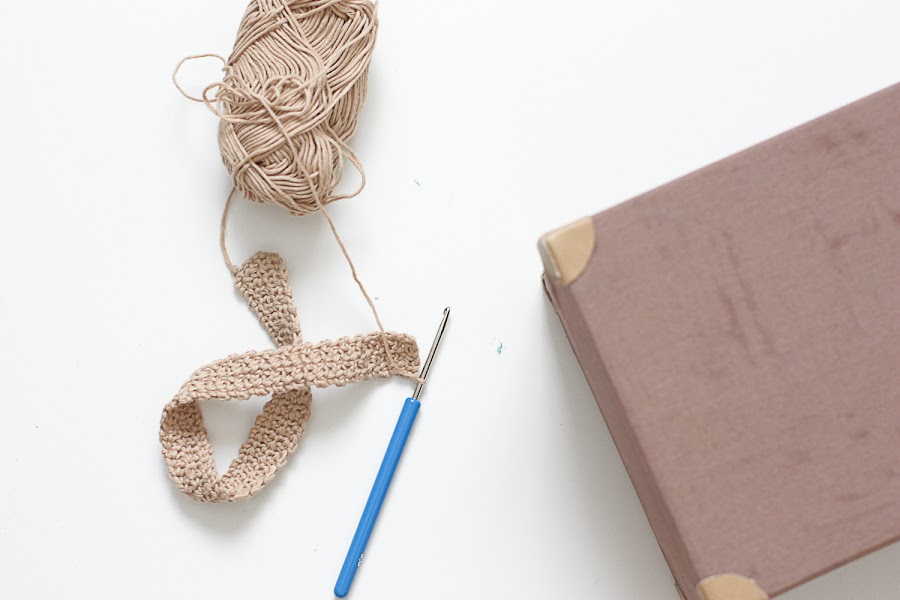 3. Crea una cinta decorativa: con un ovillo de algodón fino y una aguja de crochet puedes tejer una tira de un par de centímetros de ancho para crear las correas de tu maleta. Si no sabes hacerlo, puedes recurrir a una cinta normal. Sujeta las cintas con las chinchetas, colocando dos en la tapa y dos en el lado opuesto, para cada cinta.