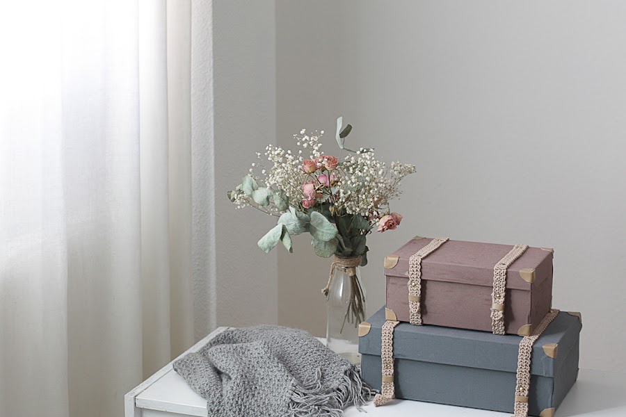 Ahora sí, vamos a ver distintas soluciones bonitas y prácticas para almacenar según las necesidades de cada estancia de la casa. En esta primera parte voy a enseñarte a crear espacio de almacenamiento para tener a la vista: maletas hechas con cajas de cartón.