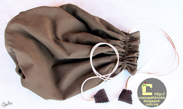 Le he puesto unos "rematitos", en forma de trapecio, de antelina de tapicería, a juego con la bolsa que también es de antelina.