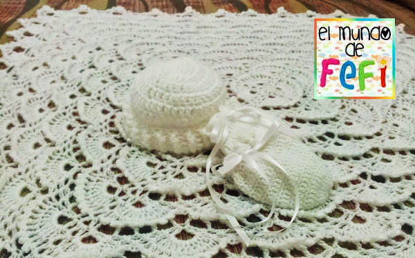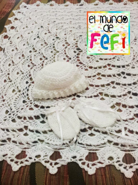 Mantilla, gorro y manoplas para bebé tejidos al crochet