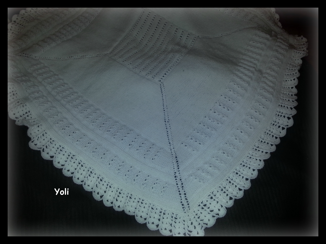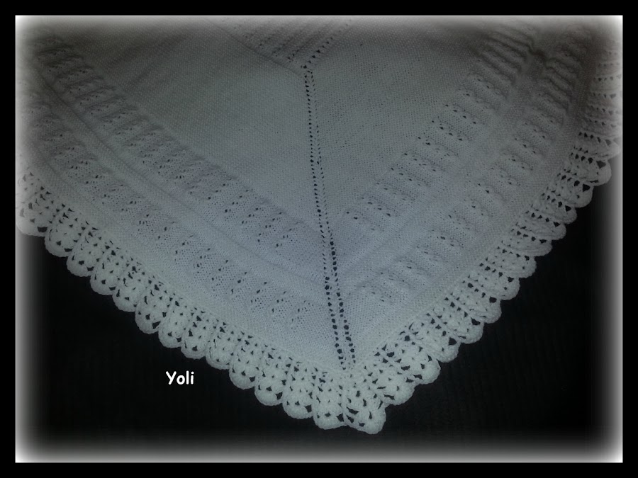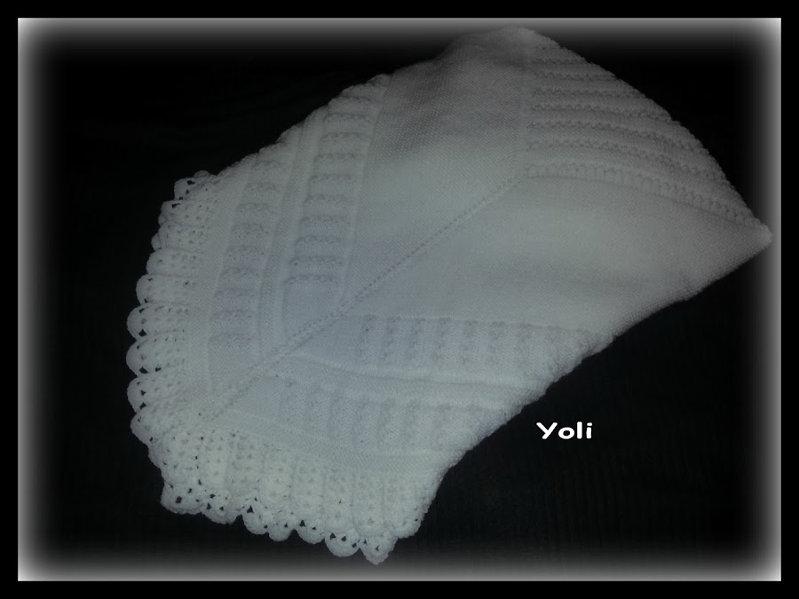 Como veis, se puede utilizar cuadrada como manta o en pico como toquilla, que al quedar doble coge mucho cuerpo y abriga bien al bebe.