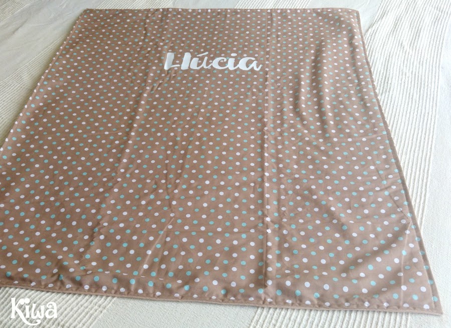 Hoy os enseño una mantita. Tamaño mediano, para llevarla en la silla de paseo, en el coche, para tapar al bebé en las noches frescas de verano o incluso como pequeña colcha para la minicuna o el moisés.