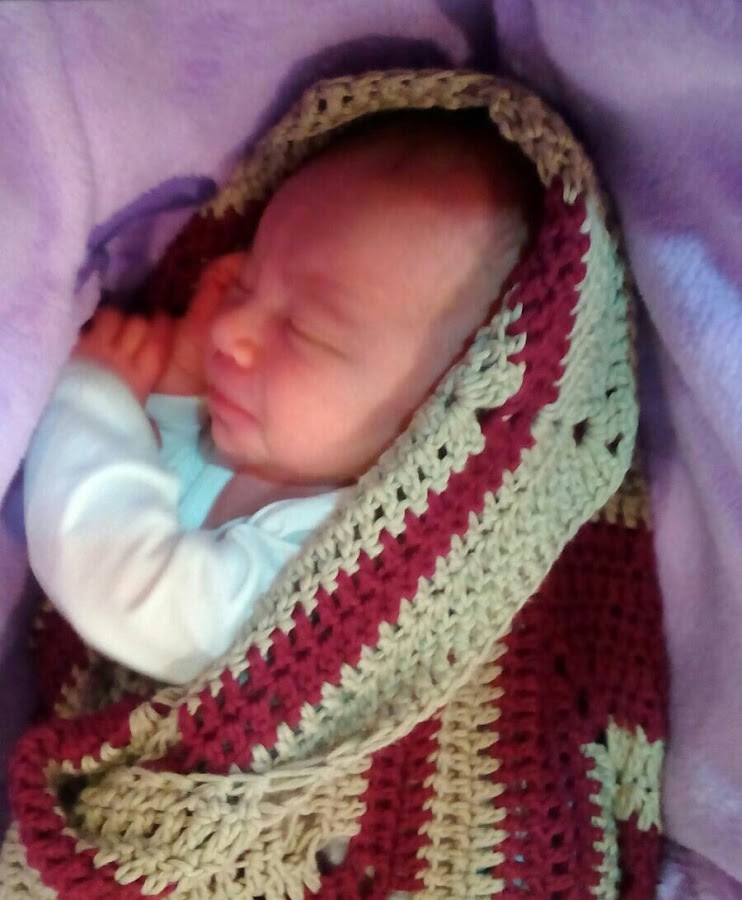 Y la última fotito con mi nuevo primito usando la mantita , que nose vosotros pero para mi no hay mayor satisfacción que ver que mis cositas tejidas a mano y con cariño gustan.