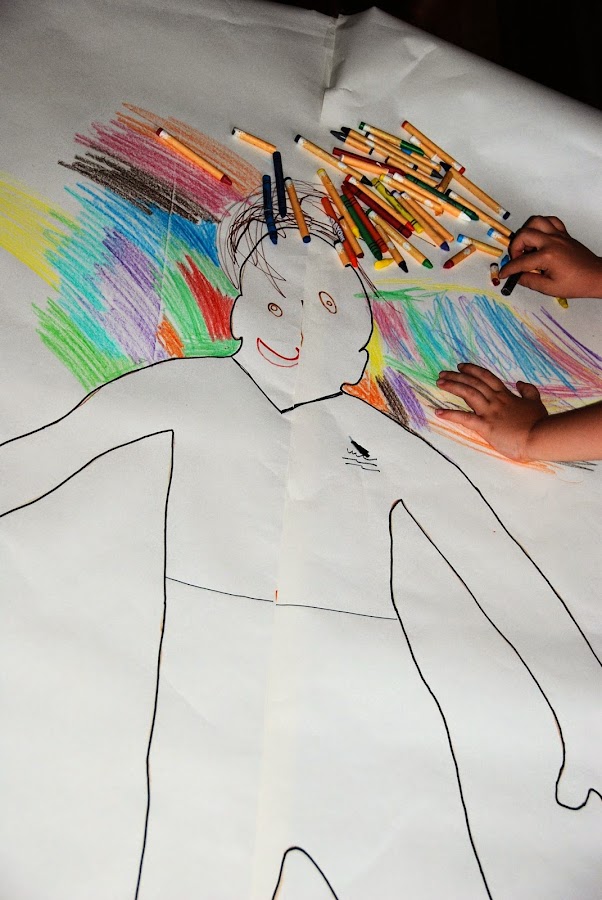 Luego, comenzamos a pintar de muchos colores intentando no salirnos y jugando a nombrar colores y ver quien los coge más rápido, a mezclarlos,....