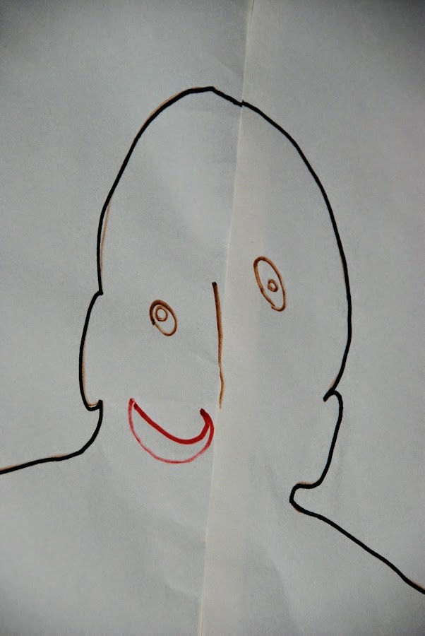 y jugamos a que pinte los ojos, la boca, la nariz, el pelo, ....