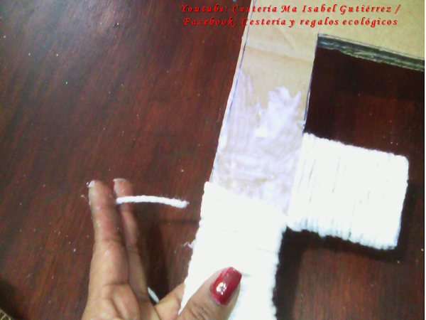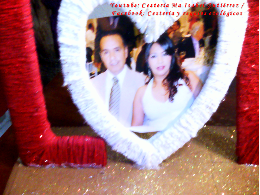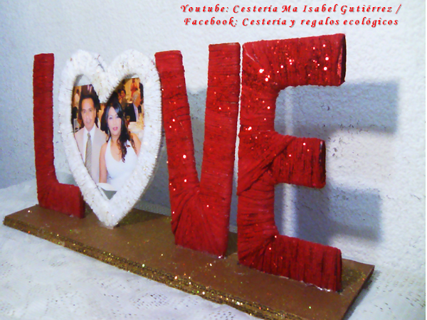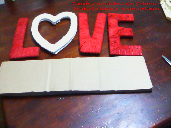 Empezamos a forrar las letras con estambre, solamente el corazón se forrará por separado cada una de las dos piezas... Si tienes estambre rojo, deberás forrar de este color todas las letras menos el corazón. Yo no tenía en ese color, así que todas las forré con estambre blanco, luego pinté con pintura vinílica (la que usamos para pintar paredes)...