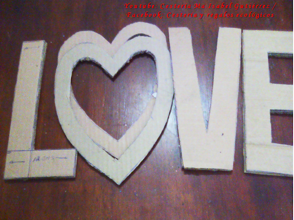 Cortamos tres piezas en cartón de cada letra, a excepción del corazón que sustituye a la "O",