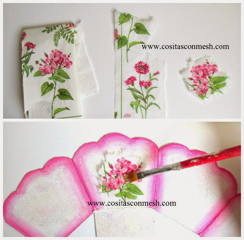 6.-Usare servilletas de decoupage para decorar la cajita, puedes usar laminas o algún dibujo que te guste.
