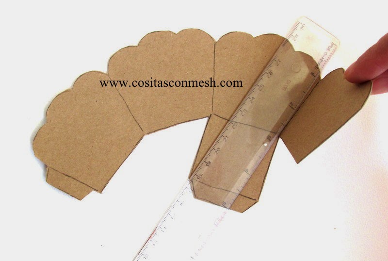 2.-Aqui ya tengo el molde dibujado, en la pieza de cartón que recicle de una caja de galletas