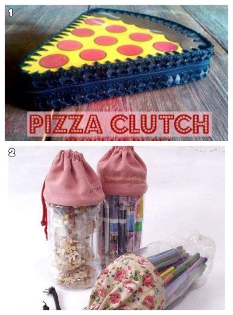 Con botellas de plástico puedes elaborar un hermoso, original y divertido bolso estilo clutch para salir de paseo en las tardes; o para que tu pequeña hija guarde algunos objetos que normalmente pierde con facilidad. También puedes elaborar unas hermosas cartucheras u organizadoras tipo tula. Súper hermosas, prácticas y originales ¿cierto?