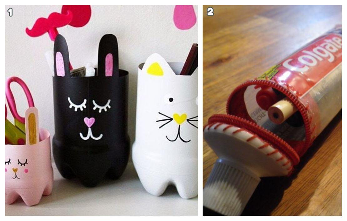 Si a tus pequeños les cuesta un poco mantener el orden en su mesa de trabajo y tareas; puedes probar colocando estas hermosas figuras organizadoras en su estante. Así se animarán un poco a mantener su espacio ordenado y limpio. También puedes elaborar unas cartucheras muy prácticas con los envases vacíos de pasta dental; seguramente, lo pensarán dos veces para perder nuevamente su estuche de colores.