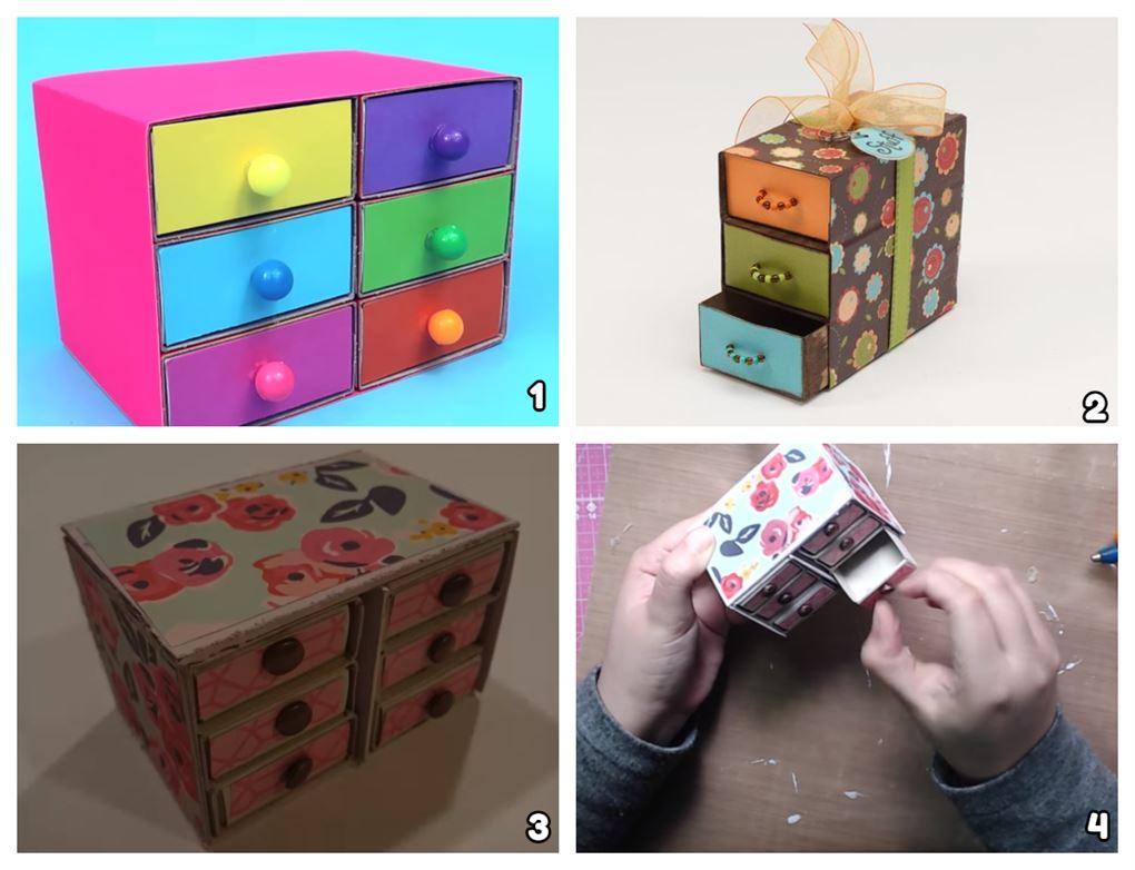 Así como ocurre con las cajitas secretas de cerillas, los estantes miniatura son extremadamente originales y únicos; cada uno puede diferenciarse entre sí con pequeños detalles marcados por el gusto personal.El cartón de las cajas de cerillas es ideal para usarlo en su tono natural o para cubrirlo con cartulinas, papeles y washi tapes coloridos. Solo debes adaptar algún modelo que te guste a la idea que tienes en mente. ¡Los resultados serán increíbles! Tan increíbles como este hermoso organizador en miniatura.
