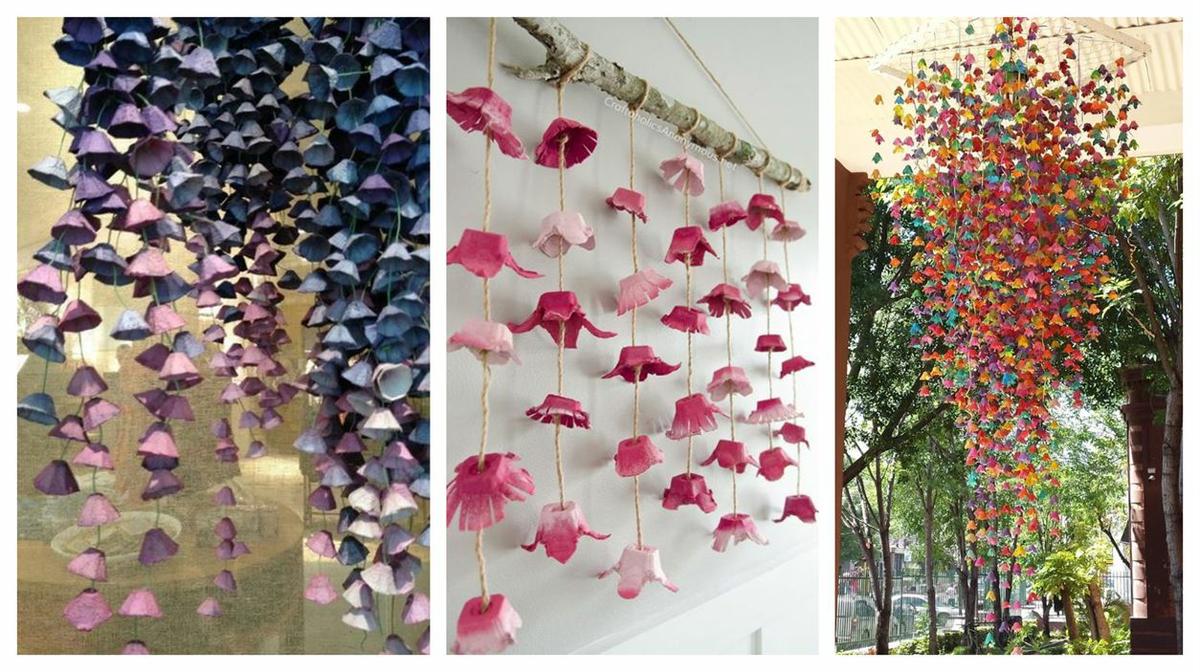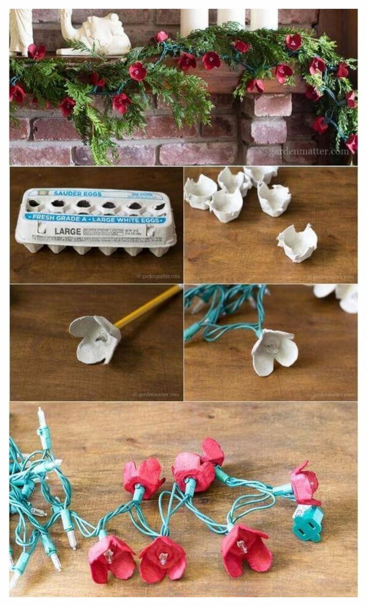 1 https://www.pinterest.es/pin/703756180653980/ 2-3 https://www.youtube.com/watch?v=ETl62VYeW6U Las cajas de huevo que aún no has desechado, un poco de pegamento, pintura e hilos de lana o estambre pueden unirse para complementar una decoración muy TOP. Checa estas hermosas guirnaldas hechas con hueveras.