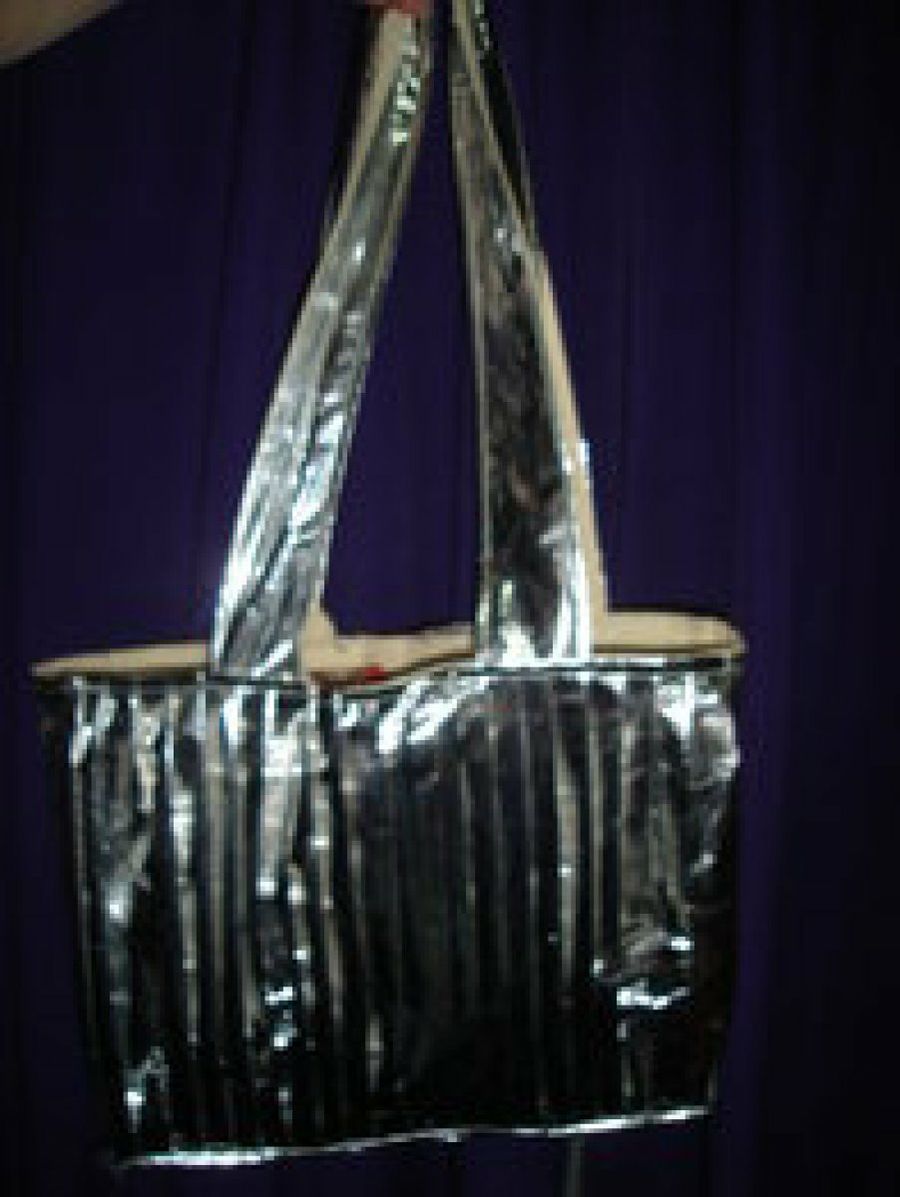 LAURACORT79 se hizo un original bolso con los envases brillantes que vienen en el interior de las cajas de leche. Y el resultado es un bolso de color metalizado muy llamativo. Si queréis saber cómo lo hizo, en este post lo explica.