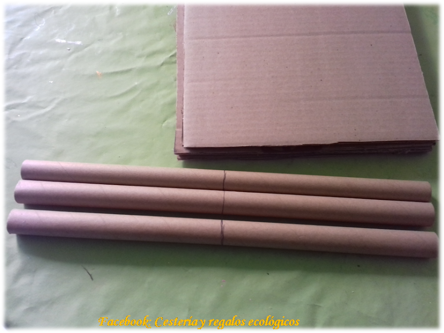 Los tubos de cartón pueden ser grandes como estos que miden 44 cms., de largo, pero de igual manera podemos utilizar los tubos mas cortos que vienen en el papel aluminio o las servilletas de papel...