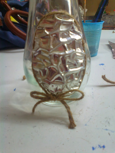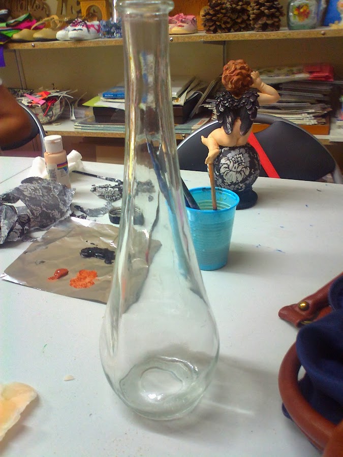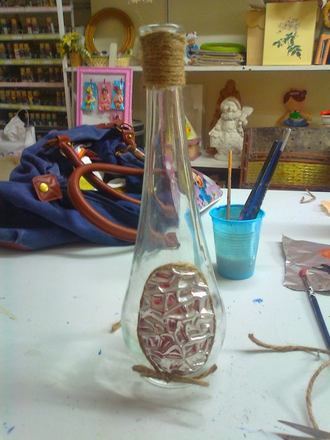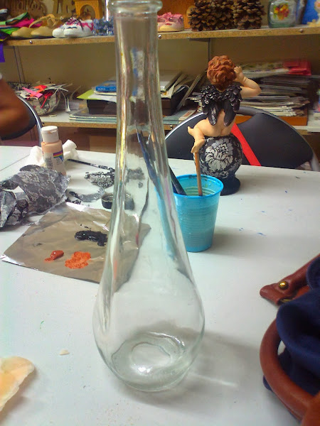 Os expongo el proceso de la decoración de una botella con estaño laminado.