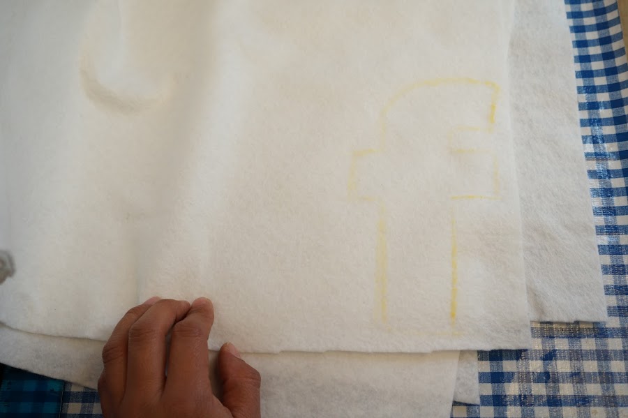 cortaremos la imagen, lo que es, para el caso de facebook, la letra f, para después remarcar en nuestro fieltro blanco y recortar.