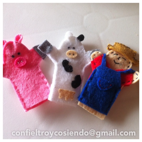 Con fieltro y cosiendo y mucho mas en el blog de Monica Rodriguez hay infinidad de manualidades con fieltro y una de mis favoritas fueron estas Marionetas de dedo de fieltro: el cerdito, la vaca, y el granjero. Son muy sencillos y fáciles de realizar.