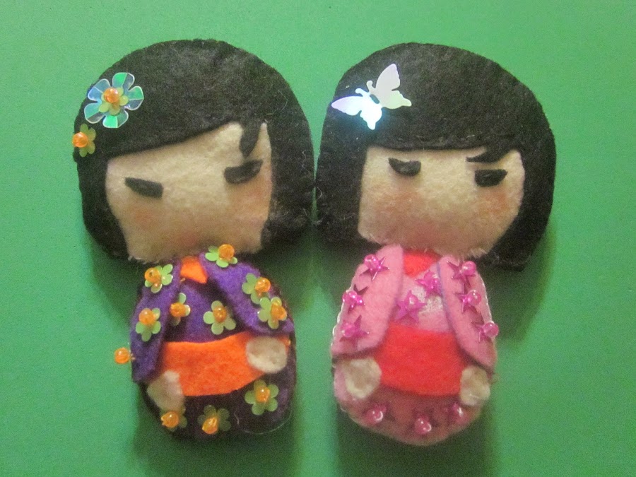 En Decorate tu misma Eva Asencio realizo unas bonitas muñequitas japonesas, hay un vídeo tutorial muy bien explicado y lo mejor de todo es que hay moldes, si te das una vueltecita por su blog podrás toparte con muchos mas detalles para realizar en fieltro.