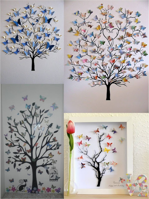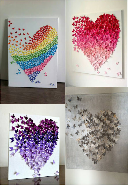 Otra idea similar con mariposas de papel, acordes a la estación. Escoge la forma que quieras rellenar: un corazón, una mariposa, un árbol, etc.