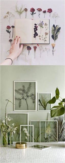 Si te encanta la decoración natural seca hojas o flores entre las páginas de un libro y enmárcalas dentro de cuadros sin fondo.Flores secas enmarcadas