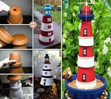 Ideas decorativas con macetas- faros bonitos