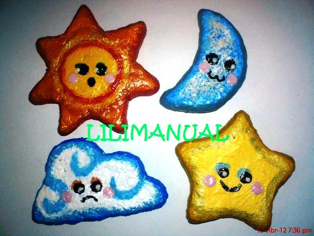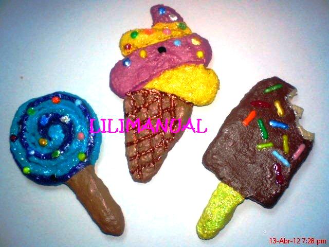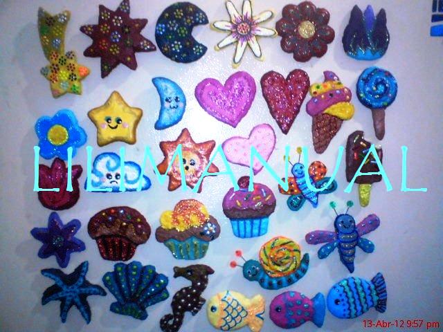 Y AQUI LES MUESTRO UNAS FIGURAS QUE HICE CON PAPEL PERIÓDICO REMOJADO Y ENGRUDO (PAPEL MACHE) LAS CUALES DECORE Y COLOQUE UN IMÁN POR DETRÁS PARA DECORAR EL REFRIGERADOR.