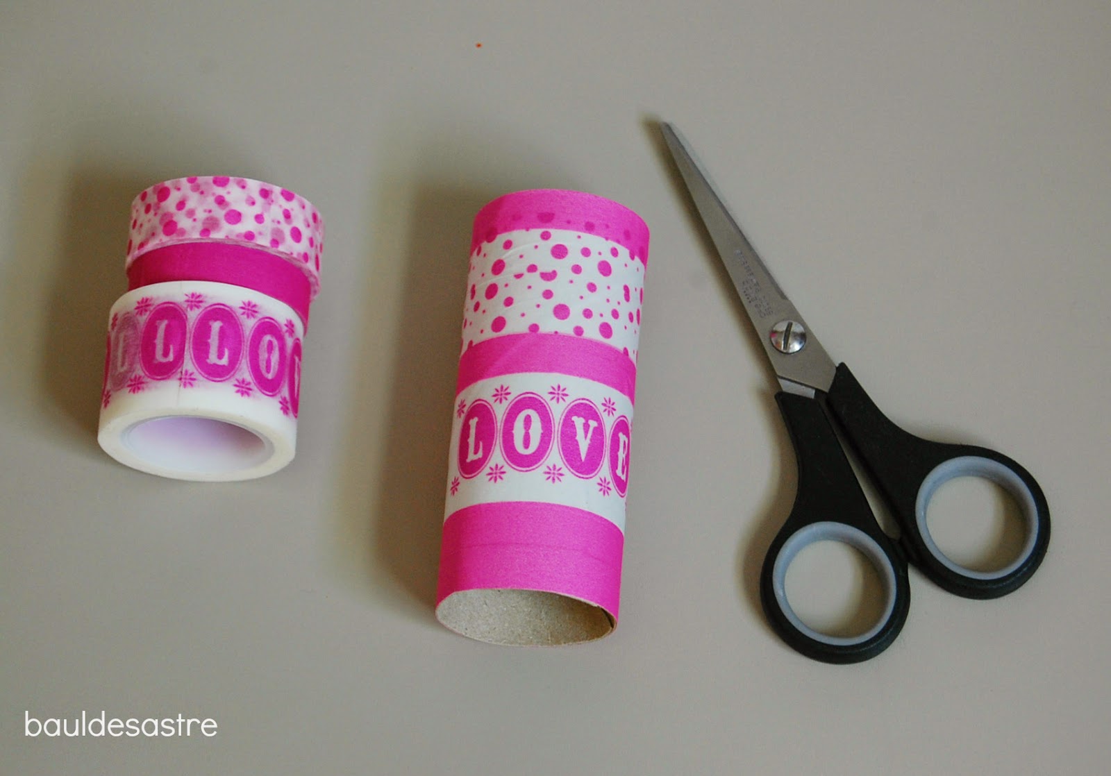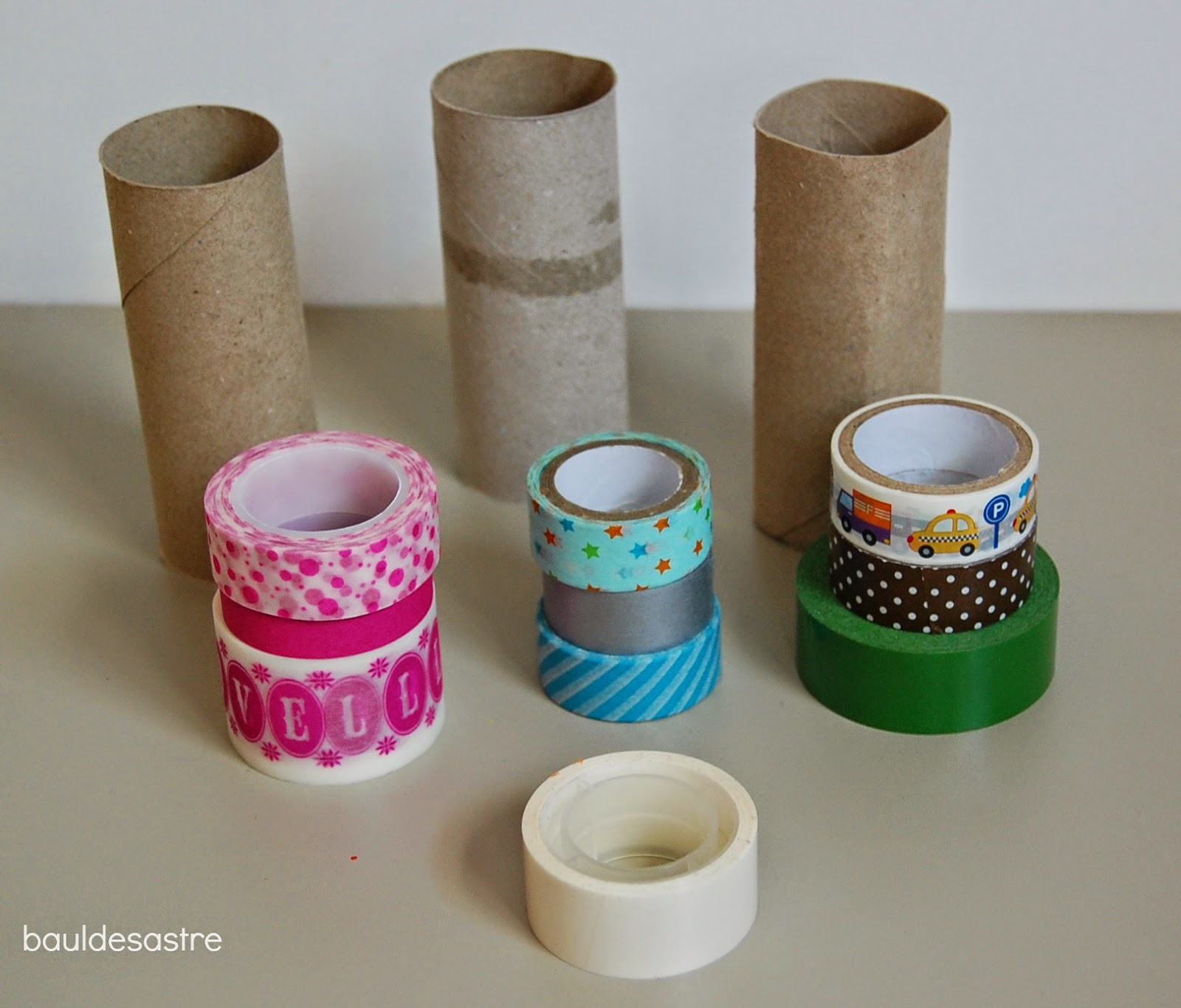 Lo único que nos hace falta es un rollo de papel WC vacío y la caja de washi de la casa.