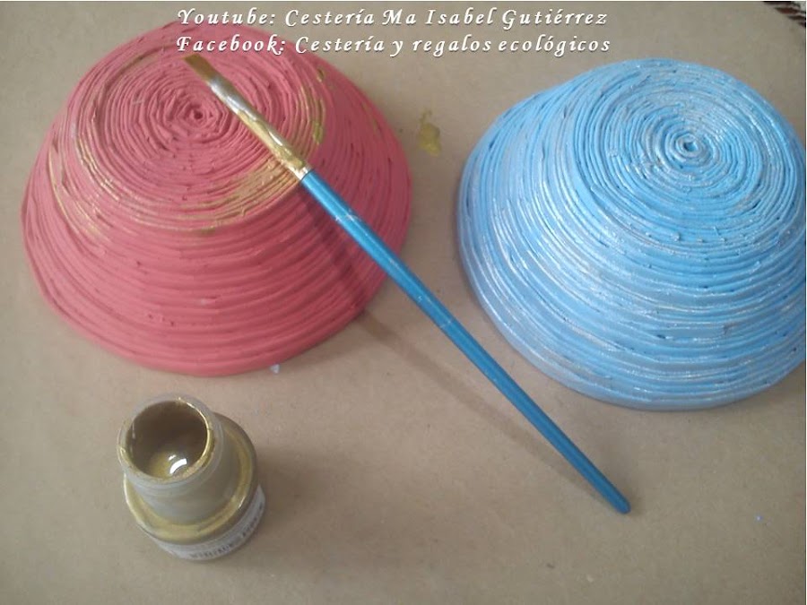 Para realzar la pintura base, yo le aplico también unas pinceladas leves de pintura dorada o plateada... También aplicamos una capa de barniz transparente a todas las piezas...