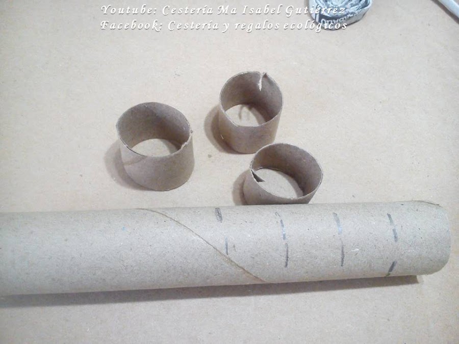 Aparte, para formar las patas, cortamos cuatro tramos del mismo tamaño de tubo de cartón (puede ser tubos de cartón del papel higiénico o el que viene en las servilletas de cocina),