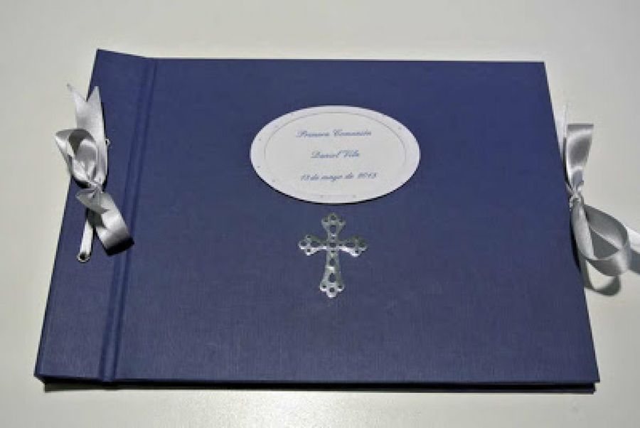No hay mejor recuerdo que las fotografías. Por ello, una de las personas más cercanas al protagonista del evento suele encargarse de la preparación de un álbum de fotos. También se puede contratar un fotógrafo profesional para no olvidar nunca este maravilloso día, realizando a nuestro hijo su propio 'book'.La usuaria Eycartonnage ha optado por un color azul marino con lazos plateados en los extremos. En el centro, en blanco, resalta una etiqueta con el nombre del niño o la niña y la fecha en que realizó la Comunión. También ha pegado una cruz a juego en la portada y ha cosido las láminas.