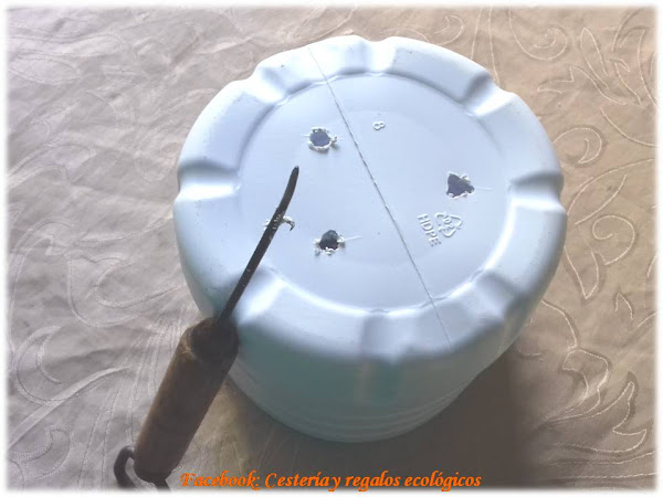 Por la parte de abajo hacemos 3 pequeños hoyos para que drene el agua de riego...